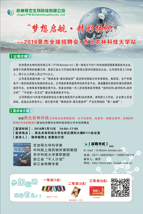 杭州景杰生物科技有限公司(PTM Biolabs Inc)是一家成立于2011年的创新型国家高新技术企业,坐落于风景秀丽的钱塘江畔,是浙江省大力引进的海外高层次留学归国创业企业。公司现有员工100余人,硕士以上科技人员占70%以上。