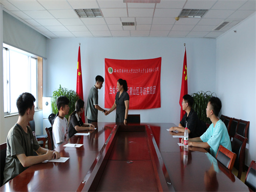 8月4日,实践团队长陈景烁同学联系到中国人民政治协商会议临沂市罗庄区委员会的马主任并热情问候,随后实践团全体成员开展了一次政治理论学习。实践团队长陈景烁向马主任表明实践团寻访沂蒙老区的真挚与热情。实践团成员们在会议室聆听马主任讲解沂蒙精神的深刻内涵,随后与马主任进行交流讨论,讲述一路上的所见所闻,抒发自己的真切感受,更加深入地了解了沂蒙文化,增强了爱国情怀!