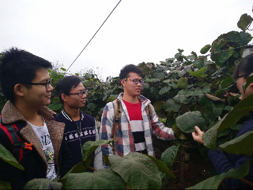 在阿姨的带领下,队员们到达了猕猴桃种植基地,途中学子们不断虚心求教,阿姨都一一做了详细解答。交流中,队员们了解到合作社种植猕猴桃的采摘方式、成本收益及销售渠道等相关情况,以及即将过冬如何帮助猕猴桃防冻的问题。瞧见前面有几个阿姨在采摘猕猴桃,队员们便积极热心地前去帮忙,在实践中更好的理解运用所学专业知识,提高动手能力。