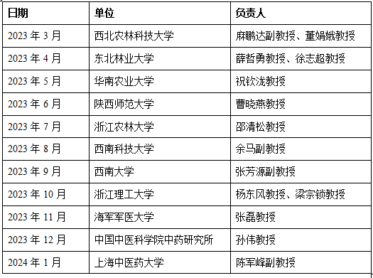 表1 植物次生代谢虚拟教研室论坛承办单位顺序表