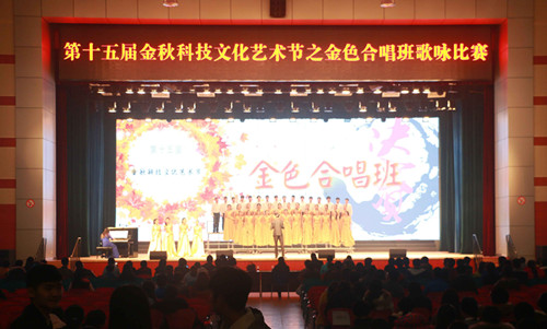 11月29日晚,北绣山活动中心欢声笑语一片,管弦丝竹齐鸣。yl8cc永利官网第十五届金秋科技文化艺术节之金秋合唱班合唱比赛决赛在此拉开帷幕。本次大赛由校团委主办,yl8cc永利官网团工委、学生分会、研究生分会承办,在全校范围决选出了12只优秀队伍入围决赛。各支队伍一次次为同学们带来精心准备的表演,让同学们沉醉在这场视听盛宴之中。