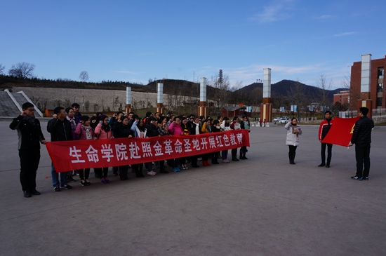 下午,全体党员来到薛家寨革命旧址。1933年春,刘志丹、谢子长、习仲勋等老一辈无产阶级革命家将陕甘边党政军领导机关迁驻薛家寨,这里成为照金苏区的政治、经济、军事中心;是红军的后方基地。在这里,红二十六军的不断壮大和陕西苏维埃运动的迅猛发展。面对国民政府的围剿,根据地军民奋起抗击,取得一次又一次反“围剿”斗争的胜利。通往薛家寨的道路险阻,坡道笔陡,当大家重走红军当年的路线,登顶薛家寨后,通过石碑上的文字了解到在薛家寨保卫战中,无数英烈不做俘虏,英勇就义的壮举后,无不对先辈们用热血和生命保卫的土地充满了敬意,对自己今天所拥有的幸福生活充满了无限的感激之情,更深切感受到永垂不朽的英烈们,不怕吃苦,为共产主义艰苦奋斗的奉献精神,进一步坚定了建设中国特色社会主义的理想信念。生工支部的程爽爽同学在重走红军路之后坦言:“这次的红色教育对我来说意义重大,重温过去的那段艰苦奋斗的革命历史,不仅让我对老一辈革命先烈的坚定的理想信念深深震撼,更是感受到如今幸福生活的来之不易,我们应当加倍珍惜,更加忘我的投入到学习工作中,为我们民族的伟大复兴贡献力量。”