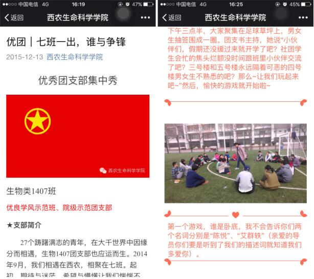 2014级学生首次实施大类招生,在顺利完成专业分流后,新建班级未能在线下及时建立联系,新任班委难以开展工作及集体活动,导致班级载体缺失,使得学生对新班级的集体意识淡化。为了加强班级建设,传承yl8cc永利官网优良班风、学风,yl8cc永利官网积极探索,网外活动、网内推送,借力“易班”,建设网络班级,使得线上线下双管齐下。1407班以优异的学习成绩、较高的四级通过率获得校级“优良学风示范班”及“优秀团支部”的荣誉;1408班与1412班以优秀的班级文化建设获得校级“先进班集体”称号。截止现在,14级“易班”注册率已达到年级全部人数的85.3%。