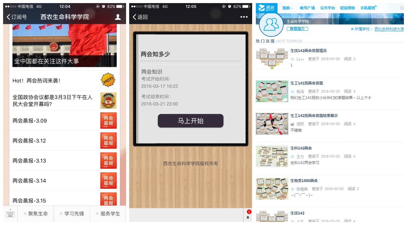 此次线上测试,共计630余人参加。其中,大一、大二的学生以班级为单位,在易班平台齐齐发帖,共晒出21个班级的“两会”学习成绩单。