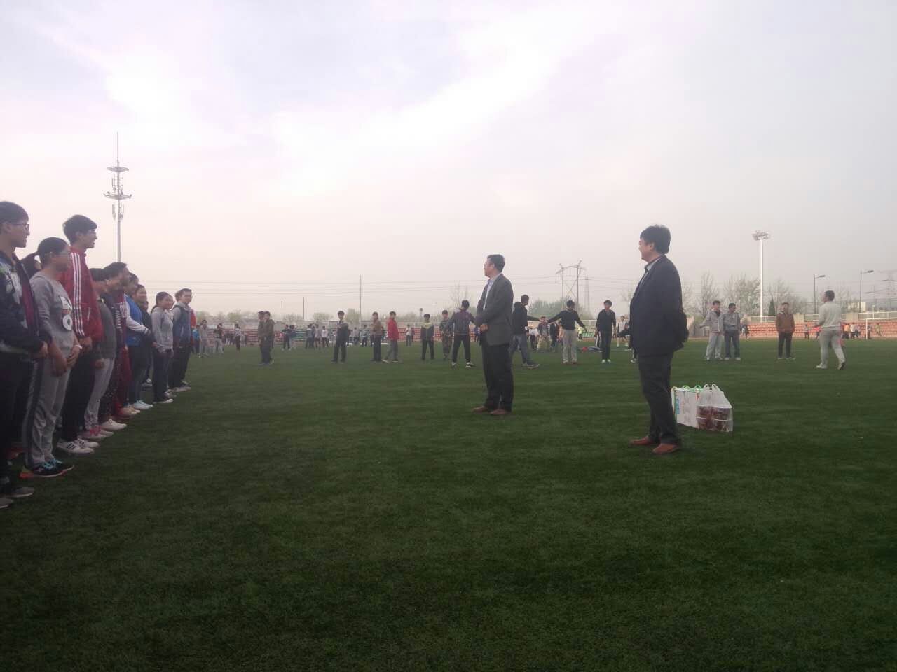 为更好的备战校运会,4月6日,yl8cc永利官网党委书记化小峰老师亲临田径场,在了解了队员春训情况后,发表讲话为运动员们加油鼓劲。一同前往的还有yl8cc永利官网党委副书记徐海老师以及学院各年级辅导员。