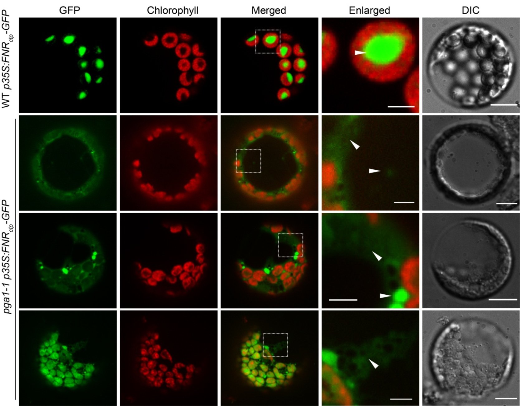 FNRcTP-GFP在pga1-1突变体的细胞质中滞留