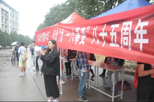 “9 月 18 日,这是一个令中华儿女痛彻心扉的日子, 纪念九一八,不忘国耻,是为了及记住落后就要挨打的历史教训,是为了坚定中华民族伟大复兴的信念,以史为鉴,面向未来,让我们用青春的热血和激情,点亮祖国腾飞的火炬,照亮整个世界民族之林。 ”生物1609班的李雯君同学在yl8cc永利官网宣讲处慷慨激昂的演讲,道出了无数中华儿女的爱国情,路过的同学们无不驻足聆听,陷入沉思。这一段历史是中华民族永远的伤痛,那些无畏的先烈将永远受到人们的敬仰。