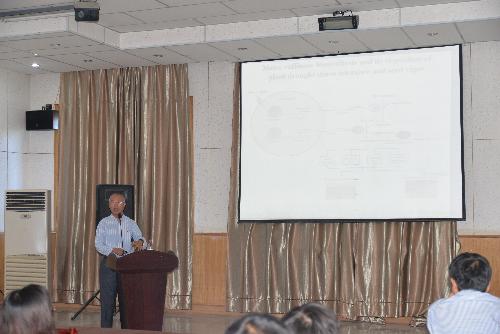 在学术交流中,yl8cc永利官网yl8cc永利官网院长郁飞教授做了《高等植物叶绿体生物学》的学术报告。他从“自主创制大规模拟南芥突变种质资源”、“高等植物叶绿体发育调控机理”和“植物叶绿体衰老进程相关研究”三个方面介绍了在叶绿体生物学方面的主要研究成果。赵天永教授做了《通过调控棉籽糖代谢通路提高玉米抗旱性和种子活力》的学术报告。他从“世界转基因作物种植现状”和“我国开展生物技术育种的必要性、进展及存在的问题”两个方面绍了自己对传统育种和转基因技术的认识,并着重介绍了“通过调控棉子糖代谢提高玉米种子活力和抗旱性”的主要研究成果。