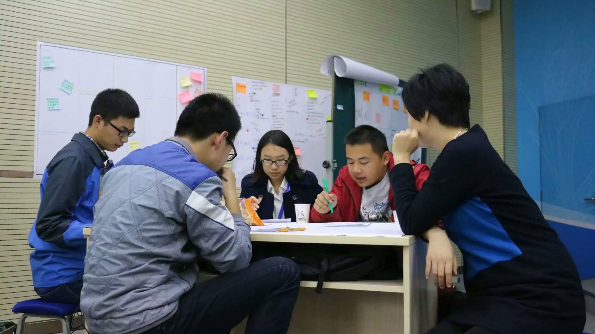 在课堂上,张凌燕老师深入浅出的解释了什么是设计思维。“设计思维最简单的一句定义就是:创新式解决问题的方法论;最好的一个定义是,它是一个寻找平衡的过程,逻辑和直觉的平衡,混乱和秩序的平衡,科学和艺术的平衡。”让同学更加了解自己三天需要学习什么。三天时间的头脑风暴,有些团队研究如何时食堂点餐智能化,有些团队垃圾分类方面做着改进,而有些在思考一种新型的听课模式,有些团队甚至想引进3D打印技术。诸如此类,大家将各式各样的奇思妙想融汇在一起,创造了很多可行的产品。在有雏形后,还对各类人士进行了调查访问,逐步将产品修缮,也正是因为有了团队的力量,才能在短短三天内拿出一个产业模型,每个成员都获益匪浅。