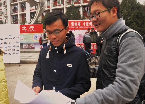 工作人员为同学讲解宣传