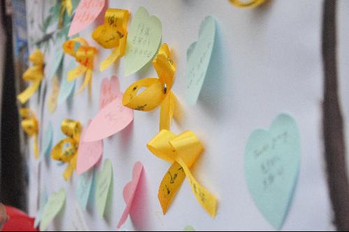 此次活动通过话祝福、写明信片、系丝带等丰富多彩的活动形式让同学们抒发感恩之情。在“学院狗”人偶和工作人员的引导下,大家将自己的感恩与祝福写在气球、便利贴、黄丝带上,贴在学生干部特地准备的展板上,为初雪之后的西农增添了一抹温暖的色彩。在整个活动进程中,工作人员更是准备了颇具特色的“你的祝福,我来送”环节,现场征集大家的意愿,收集了参与者的感恩祝福,以“感恩卡”、“感恩信”的形式,将把这份温馨送到那个“被感恩”的人手里,将这份美好的祝愿送到我们栖居过的每个角落,无论天涯还是咫尺,无论只言片语还是字字珠玑,都让这些发自肺腑的文字,在寒冬里温暖着你我的心。