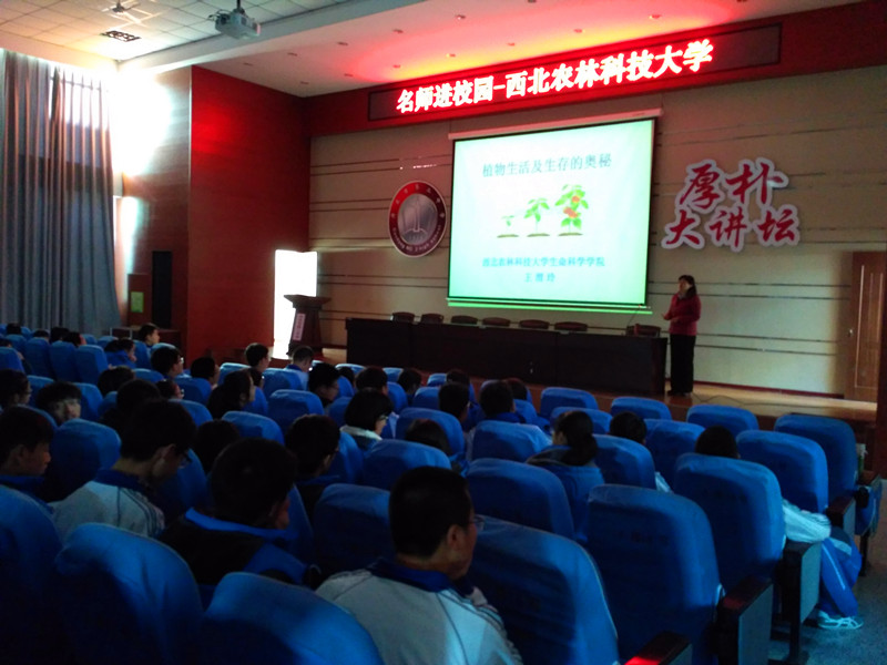 培养农林兴趣,领略西农魅力,科普报告是本次招生工作的重中之重。王渭玲教授为丹东二中、阜新市高级中学的高三同学们做了题为《植物生命活动及逆境生存的奥秘》的科普报告,以与同学们生活息息相关的植物为对象,从介绍植物起源、植物能量、植物的协调生长、开花发育及在逆境中生存的方法等五个方面对植物生存的奥秘进行了生动有趣、深入浅出的讲解,赢得了同学们的阵阵掌声,深得同学们的喜爱。丹东二中的刘可新谈道“原来身边的植物蕴含着这么多的知识,原以为枯燥乏味的科学研究,通过王老师的讲授竟然可以如此生动、神奇,我定会在接下来的时间中努力学习,好好高考,争取早日加入到探索植物奥妙的行列中!”教授们的科普报告像播种一样,将生命科学的种子撒在一群又一群的学生心中,也在同学们的心中种下了走进西北农林科技大学的美好愿望。