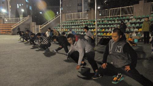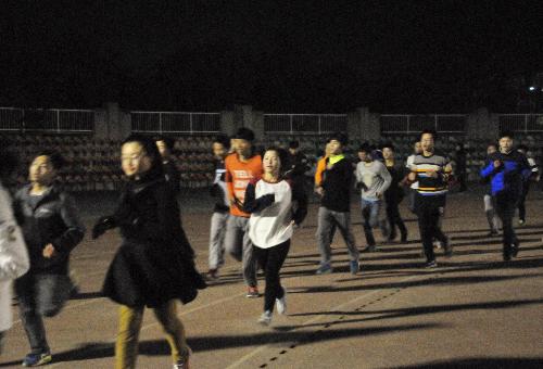 下午6点钟,在yl8cc永利官网长跑队训练时,团工委书记安相、2016级辅导员邵禹华静静地站在一旁看着同学们奔跑的身影。看着同学们在操场上挥洒汗水,安老师谈道:“冬训不仅仅是为了越野赛做准备,更是给同学们提供一个锻炼身体、促进交流的平台。这次冬训不仅分男女组,还同时划分了冲刺组和提高组,为不同能力的同学提供了锻炼身体,超越自我的机会。参训的53人中最后虽然只有24人能代表学院参加12月举办的越野赛,但在训练中提高了自己,超越了自我,发扬了学院精神,冬训的目的和意义就达到了。”在谈及天气原因时,邵老师说,“雾霾天气是冬训最大的障碍,体育部和长跑队会尽量在雾霾天气减少肺活量大的运动或者调整训练时间。训练固然重要,但身体才是革命的本钱,要保证在身体不受伤害的前提之下加强体能训练。”冬训为大家提供了锻炼身体的机会和平台,通过这种方式,可以让越来越多的学生动起来,感染大家,做到走下网络、走出宿舍、走向操场,体验大学生活的丰富多彩。冬训将整个学院连接在一起,让每一个人在寒冷的冬日都能够体会到运动的激情,这个冬天被同学们的热情点燃,不再寒冷。