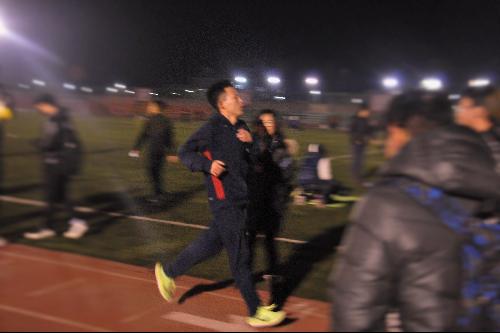 每晚6:10分,田径场上冬训队员都在紧张得做着最后的热身活动,暮色降临,寒气逼人,但他们的热情依旧不灭。说起冬训的生活,1604班陈聪说:“一开始报名长跑队还没有这样的心理准备,没想到会坚持了这么长时间。”53名同学参加2个月左右的冬训,每周4次,每次都是5000米,这种不仅是对身体的考验也是对精神的磨练。“一开始冬训的时候非常疲惫,感觉身体吃不消。”这是大家对这项活动最开始的感受,但是习惯了之后,才发现冬训给自己带来的好处,“以前总觉得自己耐力还可以,但是参加了冬训,和同学们一起竞技才发现自己还远远不够;每次冬训结束之后,回到寝室睡得都很好,第二天的精力也很旺盛。冬训给他们带来的不仅是一种生活方式,更是一种生活态度,在奔跑中度过不一样的青春。”当被问及是否还会再次参加时,队员们表示,只要时间允许,就会继续参加长跑训练。这就是冬训队员的日常,很苦很累但却丰富多彩。