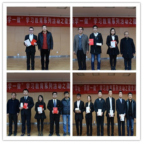 本次“微党课”比赛共有来自研究生党支部、大学生生工党支部、大学生生技党支部以及大学生生科党支部的11名党员参加。经过精彩讲演与激烈角逐,大学生生工支部肖光军《由历史人物漫谈文化自信》荣获本次比赛一等奖,研究生党支部张瀚文的《从长征谈理想与信念》与大学生生工支部刘成的《永远在路上》荣获二等奖,大学生生科支部吕学辉、崔孟奇和研究生党支部霍云云分别以《习近平治国理政思想的一点理解》、《什么是合格党员》、《长征精神,永放光芒》荣获三等奖。