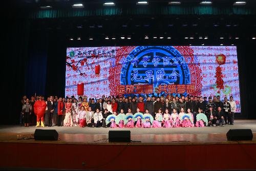 2017年为丁酉鸡年,晚会由名为《小鸡小鸡》的开场舞拉开了序幕,这支舞蹈由40余名学院团工委、学生分会、研究生分会的学生干部组成,瞬间“点燃”了全场的气氛,为广大师生表达浓浓的祝福。接下来的相声《炼金术士》、《你健康么》和小品《365个祝福》从不同的角度展现了生活的点点滴滴,即接地气也“冒热气”,在欢乐之余留给观众更多的是思考。跨越时空的汉服走秀将汉唐壮阔与明清婉约完美结合,把古典与现代融入进走秀之中,校院舞蹈大赛二等奖作品《紫禁流云》也将古典韵味精彩演绎,中国的传统文化之美深深印在同学们的心中。双排键的首次登台令同学们惊呼不断,快速的手脚配合引得台下掌声连连。随着歌曲《共筑中国梦》、话剧《麦娃》、合唱《走向复兴》的依次亮相晚会达到高潮,无论是“满怀豪情,共筑中国梦”还是王辉教授对科研执着的工匠精神亦或是“走向复兴,创造辉煌”,无不令在场观众无比振奋。一台好的晚会不能只有乐而无教,讲好“中国故事”、弘扬“中国精神”才是这个舞台最需要的元素。