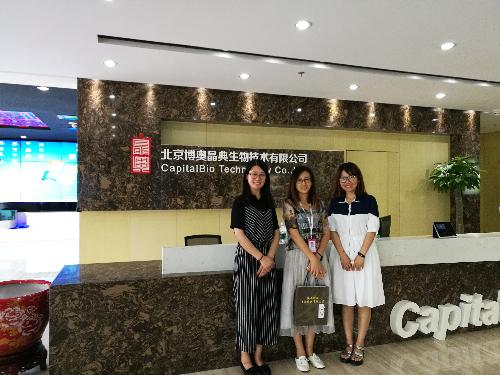 北京博奥晶典生物技术有限公司是学院的就业实习基地之一,在走访座谈中,陈悦、张红云了解到北京博奥晶典生物技术有限公司的用人需求、岗位职责以及对实习生的相关要求,该公司人力总监房晶对今年暑期未能安排实习表示遗憾,并作出解释:“寒暑假时间太短,公司实验室培训扎实,一两个月满足不了培训要求。”她提出,如若学校导师同意并且学生自己有意愿和充足的时间,也可以将自己的毕业论文或者毕业设计拿到公司做。公司很愿意培养新员工,但也希望同学们能够实习的时间相对长一点,半年以上最好,公司会很欢迎这样的学生毕业之后直接留下工作!并表示愿与学院建立更加广泛稳固深入的合作、协作关系。