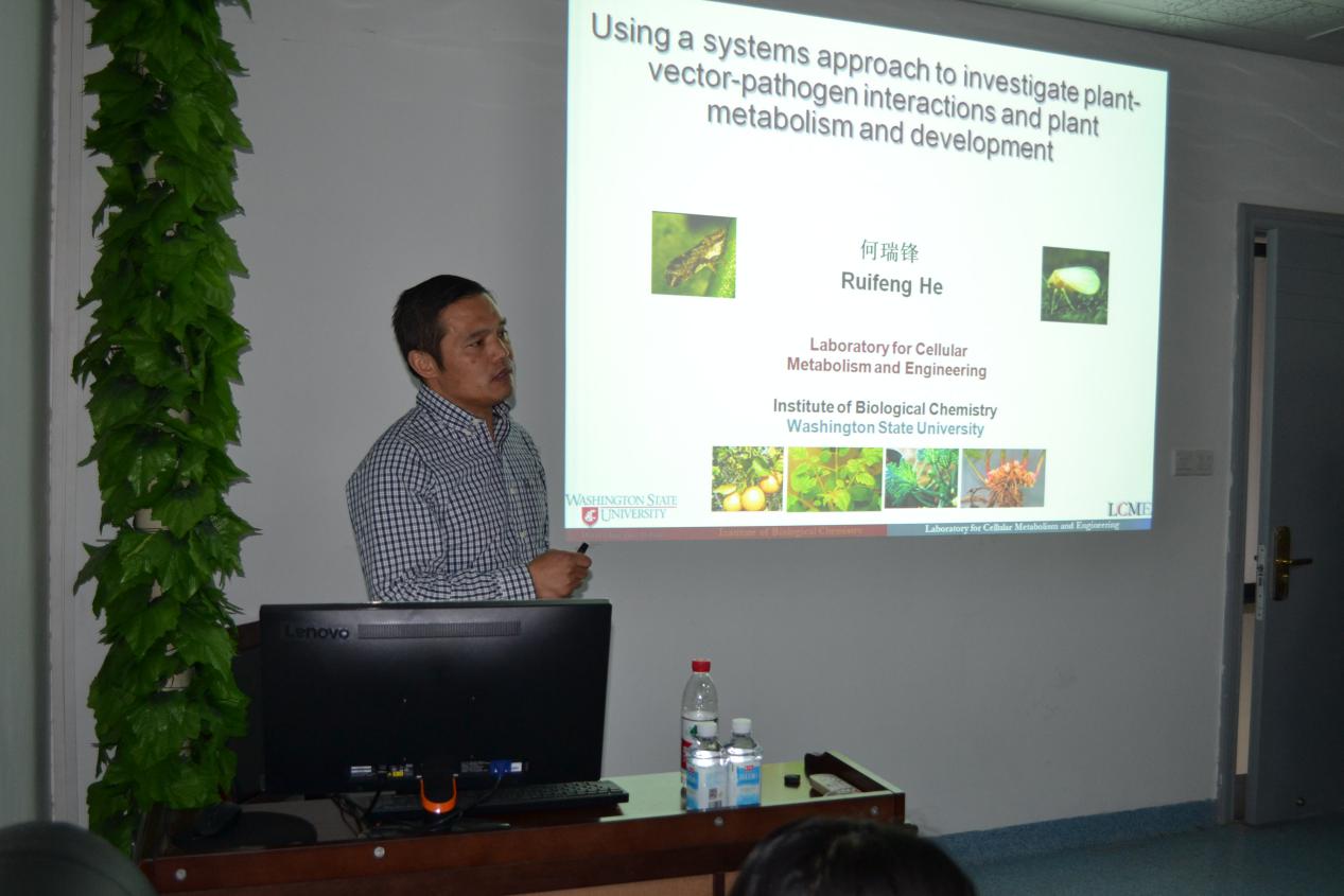 10月29日下午,应yl8cc永利官网董娟娥教授邀请,美国华盛顿州立大学生物化学研究所David R. Gang和何瑞峰教授来yl8cc永利官网访问,并为广大师生做了两场学术报告。