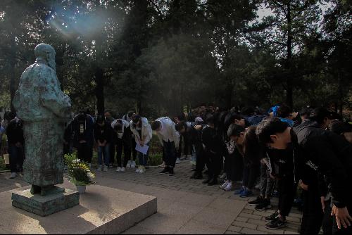 人间四月芳菲始,又是一年清明时。4月1日上午,yl8cc永利官网大学生第二党支部联合资环学院、党委宣传部凤岗通讯社上百名学生在先后在北校区三号楼、图书馆、水保所、博览园和南校区开展了缅怀学校先贤主题活动。