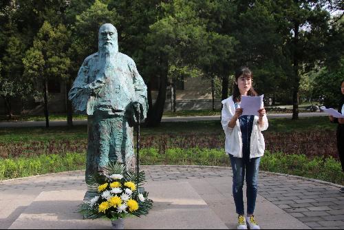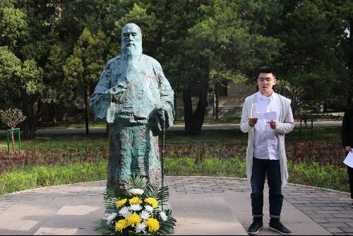 日暖风熏,翠柏凝春。在学校先贤于右任、辛树帜、沙玉清、石声汉、周尧的雕像前,学生们怀着沉重的心情进献鲜花,鞠躬致敬以表达内心的深深哀思。学生代表霍潇慷慨激昂地介绍了学校的创建历史以及于右任等一代代西农人为改善国家农业发展和教育而做出的辛勤努力。党员代表胡可欣深情地回顾了于右任、辛树帜、赵洪章、李振岐、周尧等老一辈先贤扎根杨凌,建设西北的奋斗史。