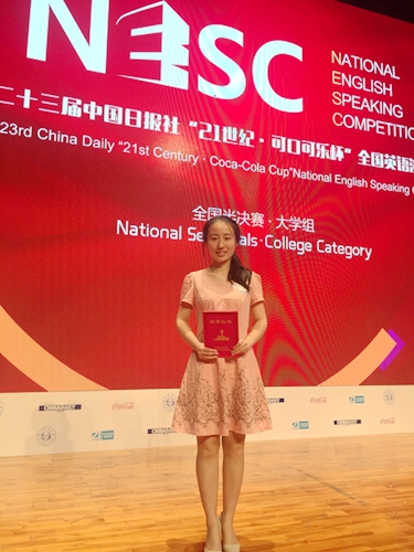 4月中旬,第二十三届中国日报社“21世纪 •可口可乐杯”全国英语演讲比赛总决赛在杭州师范大学举行。yl8cc永利官网选手彭钰琛凭借扎实的语言功底、纯正的美式英语、出色的应变能力、敏捷的思维和激情洋溢的表现,获得全国总决赛二等奖,指导教师张晓容副教授获优秀指导教师称号。这是近年来yl8cc永利官网外语学科竞赛取得的最好成绩。