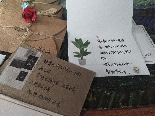 学生干部提前在教室的黑板上画好图案,字迹工整的写着“老师,您辛苦了!”上课铃响,同学们一同起立向老师问好。同时,学生干部也将提前收集好的祝福卡片一一送给老师。小小的卡片,简单的话语,却饱含着深情:“好喜欢您讲课时那份自信的笑容”、“谢谢您给我们的照顾,要照顾好自己哦”“您说过的世界令我万分着迷,希望有一天也可以走过您经过的山川荒原,去领略生命的奇迹”……同学们发自内心的尊敬与感恩,使简单的礼物变得更有意义。
