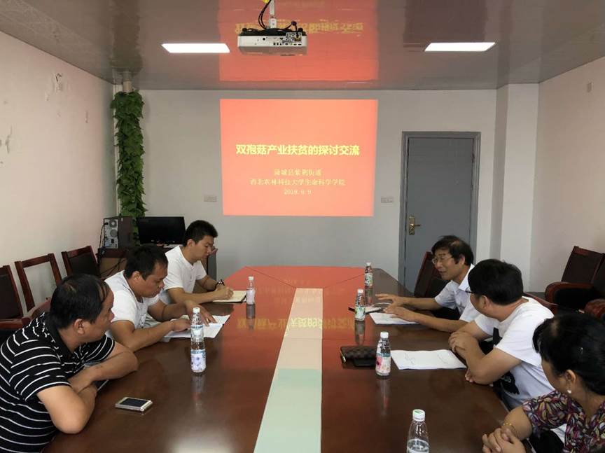 为落实国家精准扶贫政策,推动当地双孢菇产业园区建设,近日,yl8cc永利官网2018届优秀毕业生郭孟凯与渭南市蒲城县紫荆街道办事处相关人员一行与学院专家交流座谈,学习双孢菇相关生产技术。