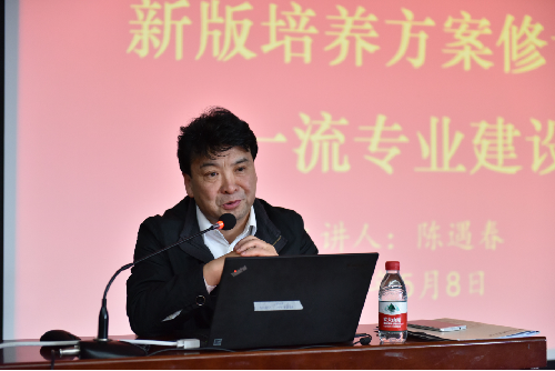 为进一步加快建设一流本科教育,优化一流本科人才培养体系,全面提高人才培养质量。2019年5月8日下午,学校教务处处长陈遇春为yl8cc永利官网全体教职工做了题为《新版人才培养方案修订与一流专业建设》专题报告,学院领导班子成员,全体教职工聆听了此次报告。