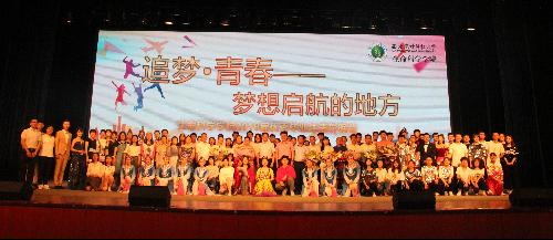 表彰晚会在青春激昂的《我们都是追梦人》中拉开了帷幕,yl8cc永利官网的团学干部从幕后来到台前展现丰姿,随后各文艺队、体育队也纷纷登场追忆了丰富多彩的校园生活。