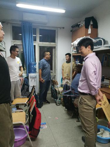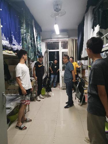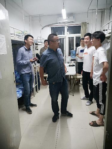 9月29日晚,马宁与全体辅导员和班主任代表一同走访了学生宿舍,全面排查宿舍安全隐患,面对面的做好学生假期安全教育。走访同时,了解学生近期思想动态,针对不同年级学生进行了分类指导,在优良习惯养成、宿舍建设、学风建设等方面做出了细致的要求。