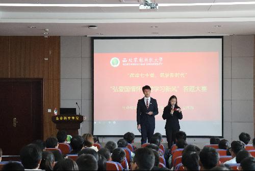 此外,为纪念新中国成立70周年,学院结合“辉煌七十载,筑梦新时代”主题团日,组织召开“弘爱国情怀,树学习新风”党史国情知识竞赛,引导新生认真学习党史国史、知史爱党、知史爱国,切实将党史国情教育入脑入心。