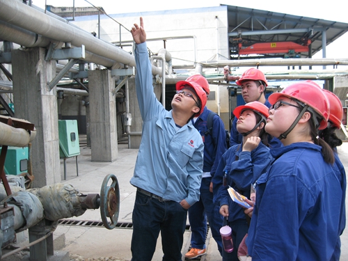 紧锣密鼓的实习内容在炎炎烈日的考验下显得尤为严峻,但相比于奔波的劳累与辛苦,实习的学生们还是更多地沉浸在对工厂的新鲜和好奇之中。“让我印象最深刻的是83米高的造粒塔,液态尿素经过它形成颗粒状的肥料。”生工133班的刘欢同学说:“亲眼看到化肥颗粒像下雪般落下来,这画面带给我不小的震撼。大家也都热情高涨,积极提问,收获颇丰。”同学们的表现也给工厂的技术人员带来了很大的触动:“我们经常面对这些设备,从来没觉得有什么乐趣。同学们过来之后,每天都十分新奇地问很多问题,让我们觉得我们的工作原来还挺有意思的。”陕化集团工作人员表示非常欢迎我们过来实习,希望保持长期合作关系。