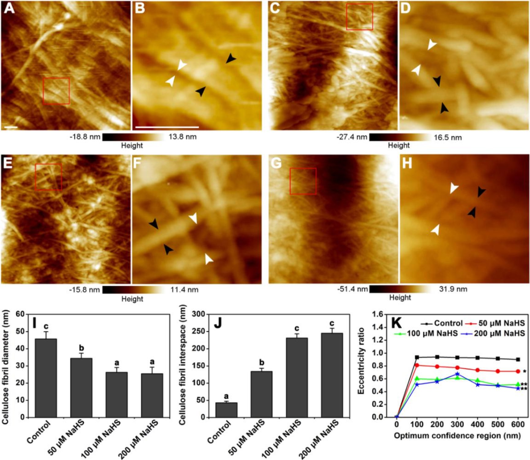 图1 硫化氢影响细胞壁纤维素丝的直径和空间排列