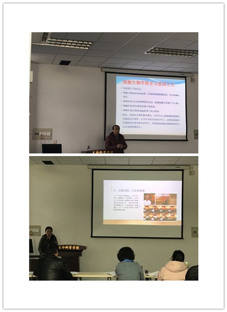 汇报中,2018年校级“课程思政”示范课程《植物学》、《微生物学》、《细胞生物学》、《生物工程设备》、《分子生物学综合实践》、《植物生理学》、《生物化学》负责人分别汇报了课程中如何将育人“思政元素”融入专业基础课和专业实验课程知识体系建设中,介绍了课程思政的设计思路与教学策略设计,以及开展的主要工作,包括如何通过教学方法改革提高育人效果,如何从问题导向切入思政元素,简明扼要的介绍了每个教学案例,以及如何在案例中融入真情实感,如何把“思政元素”做为“盐”来提高课程的“味道”等经验与体会;将yl8cc永利官网的校史、校训教育融入到知识传授过程中,将“西农精神”和“杨凌精神”的培养融入到知识传授过程中,融入yl8cc永利官网小麦育种专家李振声、赵洪璋院士和王辉教授的感人事迹,弘扬西农精神;生物工程设备作为工科专业课,在“思政元素”融入课程时,结合“特种设备事故案例”,“中兴事件”,“大国工匠”等案例,使学生认识到自己肩负的责任对他人和社会的重要性,从专业领域角度引导学生关注我国制造业的发展,鼓励学生从自身做起,为我国的民族产业出一份力。挖掘他们的工匠精神,例如脚踏实地、持之以恒、敬业负责、创新、精益专注等;在实验课的课程思政元素融入中采用了问题式教学法,从实验中的现象出发,引出学生们的思考,进而对其进行专业知识教育,同时实现科学素养和科研品质培养的育人目的。