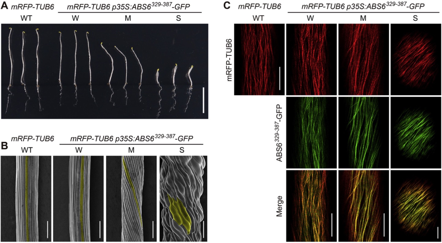 2021年5月,郁飞教授团队在《JournalofBiologicalChemistry》期刊在线发表研究型论文,发现拟南芥IQD家族蛋白中的DUF4005结构域具有微管结合功能,揭示了植物IQD家族蛋白与微管互作的新机制。微管的动态变化在细胞形态建成及植物的生长发育中发挥关键作用。微管动态受到多种类型微管结合蛋白的复杂调控。植物特有的IQD蛋白家族中多个成员以微管结合蛋白的方式发挥功能,但是IQD蛋白结合微管的机制尚不明确。该研究证明了拟南芥IQD家族成员ABS6/AtIQD6蛋白C端的未知功能结构域DUF4005是一个新的微管结合结构域,并鉴定出DUF4005中微管结合的必需序列,发现拟南芥中过表达DUF4005导致多种与微管功能缺陷相关的植物发育表型,为植物IQD蛋白的微管结合机制提供了新见解,对于深入研究微管动态的调控机制具有重要参考价值。
