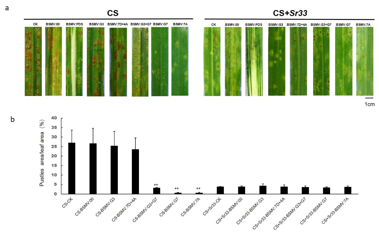 综合反向遗传学、表型分析和基因表达定量分析的结果,我们发现TaG3NPR1担负着与拟南芥NPR1相似的功能-调控SA信号通路中PR基因的表达。同时,也惊喜的发现7A染色体上的NPR1基因(Ta7ANPR1)有着与已知NPR1不同的作用模式(图2)。