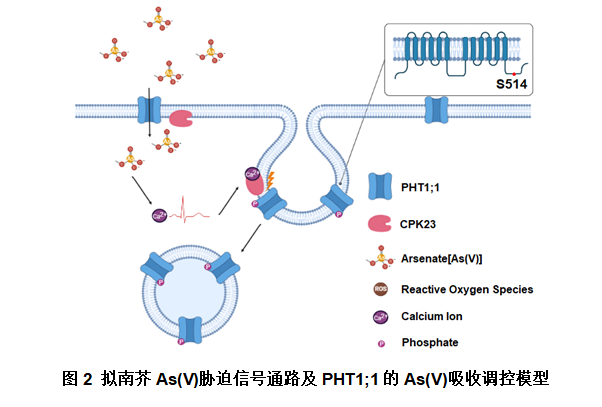 综上所述,该研究发现了砷胁迫会激发植物细胞内Ca2+信号,揭示了Ca2+-CPK23-PHT1;1信号途径抑制砷吸收的重要机制(图2),拓宽了研究人员对植物耐受砷胁迫的理解,为解决土壤重金属污染提供了分子靶标和新思路。